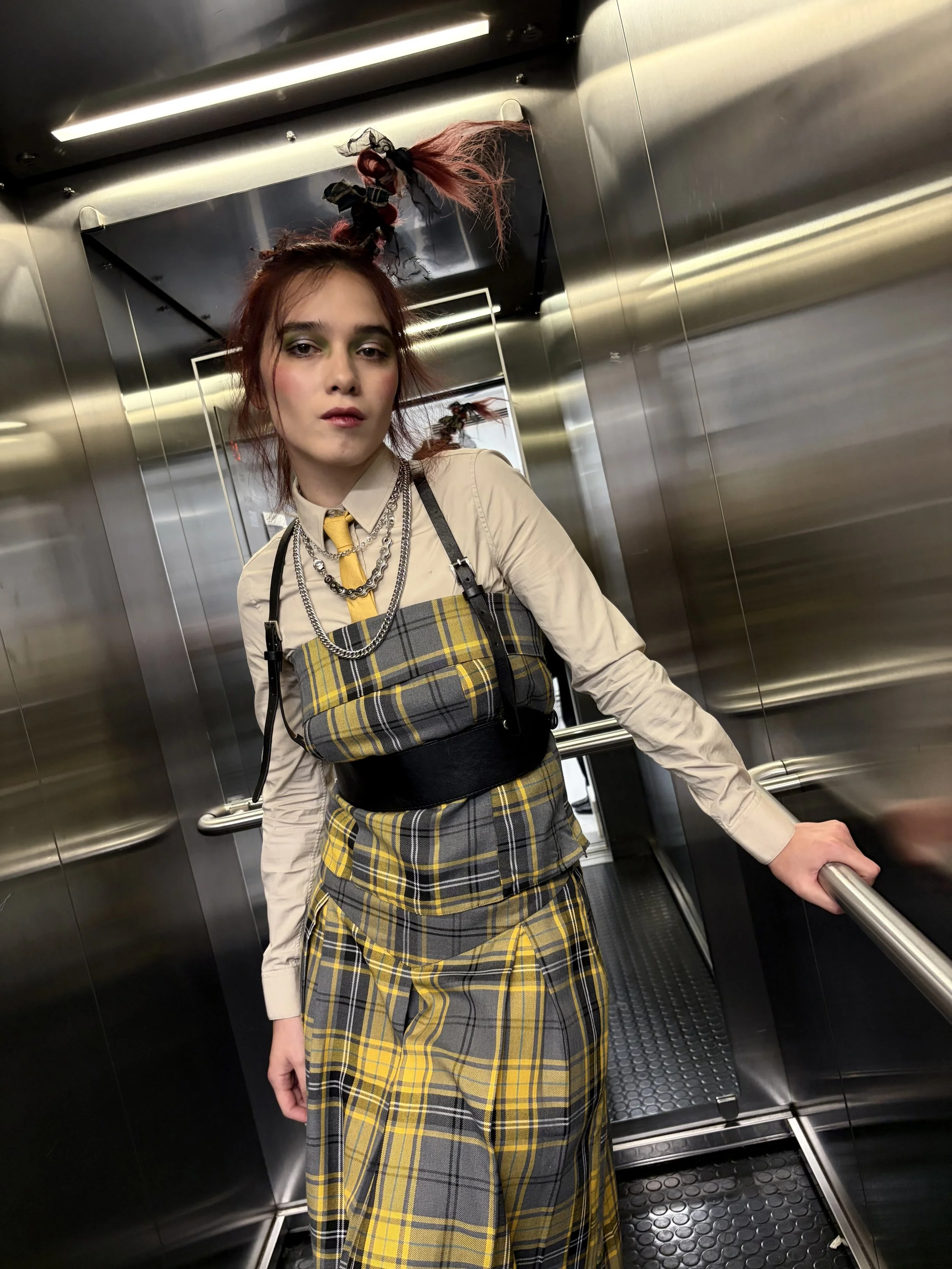 Drawing inspiration from Vivienne Westwood, the design pays homage to her rebellious spirit blending signature tartan elements with an elevated, undone punk aesthetic that captures the essence of her iconic legacy.
